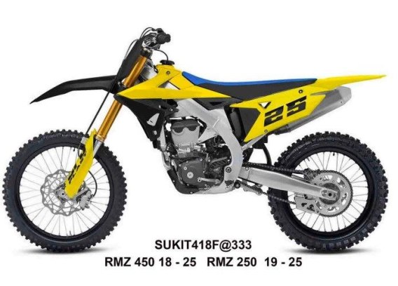 UFO 2025/11 KOMPLET PLASTIKÓW (FULL KIT) Z OSŁONAMI TELESKOPÓW (AMORTYZATORÓW) SUZUKI RMZ 250 '19-'25, RMZ 450 '18-'25 KOLOR ŻÓŁ