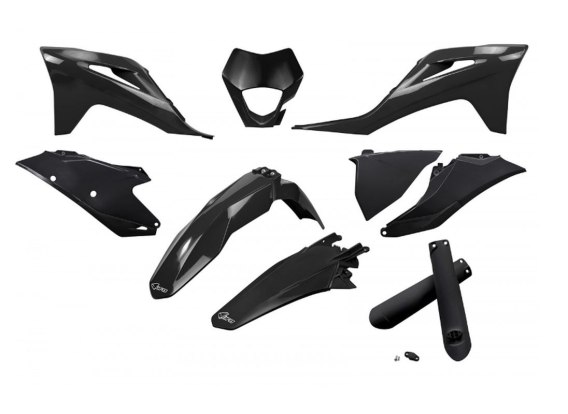 • UFO KOMPLET PLASTIKÓW (FULL KIT) Z OSŁONAMI TELESKOPÓW (AMORTYZATORÓW) GAS GAS EC / EC-F 250 / 300 / 350 '21-'23 KOLOR CZARNY