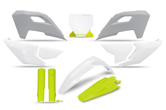 UFO KOMPLET PLASTIKÓW (FULL KIT) Z OSŁONAMI TELESKOPÓW (AMORTYZATORÓW) HUSQVARNA TC 125 / 250 '23-'24, FC 250 / 350 / 450 '23-'2