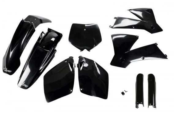 UFO KOMPLET PLASTIKÓW (FULL KIT) Z OSŁONAMI TELESKOPÓW (AMORTYZATORÓW) KTM SX-SXF '01-'02 KOLOR CZARNY