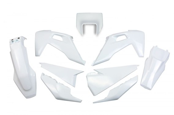 UFO KOMPLET PLASTIKÓW HUSQVARNA TE 150 / 250 / 300 '20-'23, FE 250 / 350 / 450 / 501 '20-'23 Z OSŁONĄ LAMPY KOLOR OEM (BIAŁY)